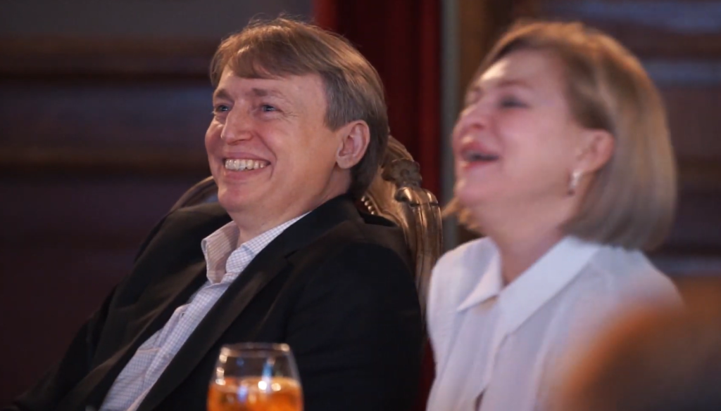 Каково же было удивление именинника, когда он увидел трогательный фильм о нём, показанный женой на его юбилее.